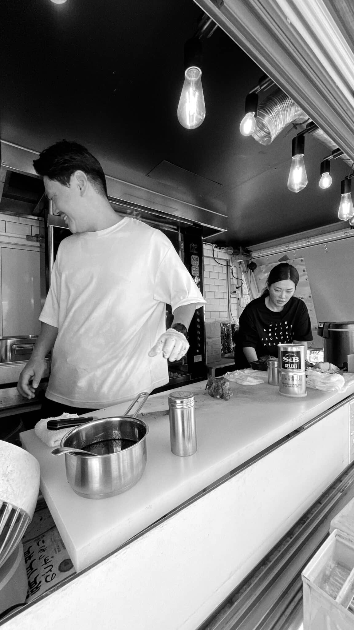Picking blueberries at their peak ripeness in early August captures them at their best. The perfect kakigori recipe is not as simple as it looks. Mr. Kato knows better than anyone what this is and infused some in a simple syrup for 1 week to create a blueberry sauce. Subtle complexities of lemon basil were additionally infused into condensed milk together by patisserie Nono. Inside the food truck a large ice block was sliced by machine into a mountain of airy shavings. Over top, a deep blueberry syrup was drizzled. Next dots of cool, tart yoghurt were added along with the lemony condensed milk infusion. Finally, nature’s perfect creation – the sweet & tart blueberry were added. The result was a multi flavor and textural masterpiece that teased the palette throughout while cooling the body on this hot 35 Celsius day in the heart of Shibuay Tokyo!