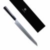 For cooks who searching for a Japanese slicing knife that is minimalist in design and functionally extraordinary, the SILVER GHOST Yanagiba is the perfect choice. At 27cm length, SILVER GHOST blades are nicely weighted for optimal control. The 27 cm length is the shortest length of the yanagiba series and offers balanced handling and maneuverability than the longest knives in this series. Its length is ideal for professionals planning to use the yanagiba slicer knife to upgrade their slicing skils and results. Professional chefs will appreciate how this knife improves work efficiency and consistency. SILVER GHOST Kiritsuke yanagiba knives handle everything from small to large boneless foods. Its length allows for single stroke slicing. Kiritsuke refers to the anglular tip style which lends itself to short, precise scoring of ingredients like eggplant, fish skin and shellfish. If you want the ultimate slicer knife in your kitchen this is it.